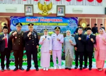 Labuhanbatu, POL | Bupati Labuhanbatu Hj. Maya Hasmita dan Wakil Bupati Labuhanbatu H. Jamri mengikuti rapat paripurna DPRD peringatan hari ...