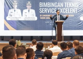 Medan, POL | Segelas air menjadi simbol Wali Kota Medan, Rico Tri Putra Bayu Waas, saat membuka Bimbingan Teknis (Bimtek) ...