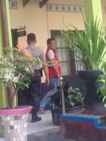 Ket photo: Ranto Limbong diperiksa Polres Samosir sebagai saksi atas penghinaan terhadap Bupati Samosir di Facebook.(Suriono ...