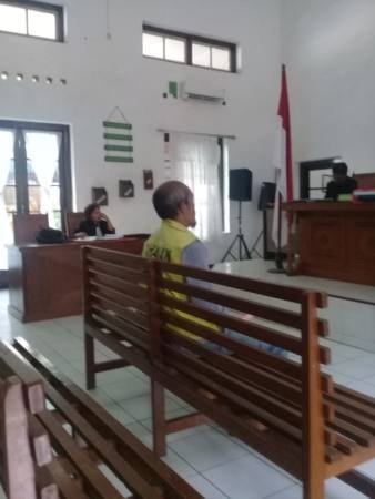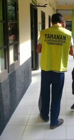 selengkapnya>Tebingtinggi, POL | Terdakwa Cristian alias Asiong tampak terduduk lemas saat JPU Sai Sintong Purba, SH di depan majelis hakim ...