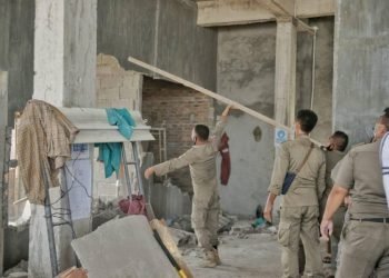 Satpol PP Tertibkan Bangunan Tidak Sesuai SIMB di Jalan Merbau