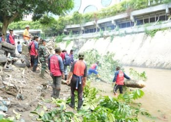 Petugas Gabungan Bersihkan Aliran Sungai Deli di Sepanjang Jalan Palang Merah Hingga Multatuli