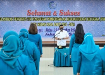 Medan, POL | Wali Kota Medan Bobby Nasution melantik pengurus Tim Penggerak Pemberdayaan Kesejahteraan Keluarga (TP PKK) Kota Medan periode ...