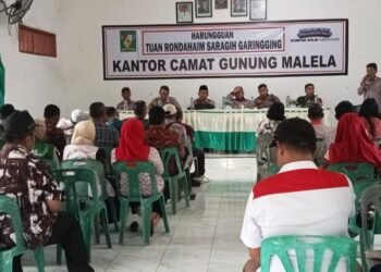 Simalungun, POL | Kapolsek Bangun, AKP Hengky B. Siahaan, S.H., M.H., menghadiri rapat Harungguan yang digelar di Kantor Camat Gunung ...
