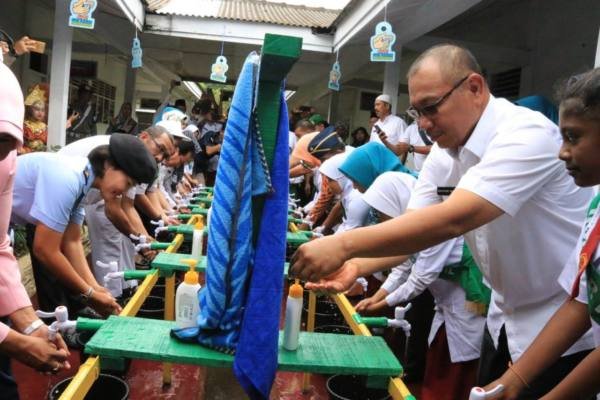 selengkapnya>Medan, POL | Cuci tangan bersama murid-murid SD Angkasa Lanud Soewondo yang dilakukan Pelaksana tugas (Plt) Wali Kota Medan Ir ...
