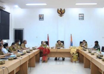 Labuhanbatu, POL | Bupati Labuhanbatu H Erik Adtrada Ritonga didamping Wakil Bupati Hj Ellya Rosa Siregar memimpin rapat dalam persiapan ...