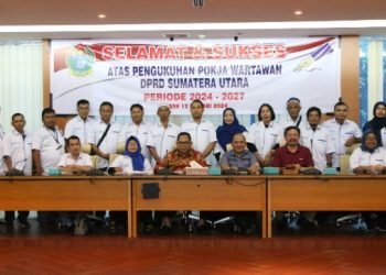 selengkapnya>Medan, POL | Ketua DPRD Sumut Baskami Ginting menghadiri pengukuhan Pokja Wartawan DPRD Sumut 2024-2027 di Aula Gedung DPRD Sumut ...
