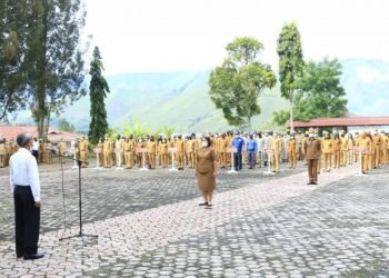 selengkapnya>Samosir, POL | Pejabat Sementara (Pjs) Bupati Samosir Lasro Marbun memimpin apel gabungan perdana yang diikuti oleh jajaran pegawai di ...