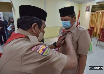 Padangsidimpuan, POL | Kwartir Nasional Gerakan Pramuka menganugerahkan tanda penghargaan Gerakan Pramuka berupa Lencana Darma Bakti kepada Ketua Mabicab Kota ...