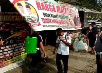 Redam Penyebaran Covid-19, Dinas Perhubungan Asahan Semprot Semua Loket Bus AKAP di Kota Kisaran