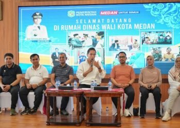 selengkapnya>Medan, POL | Wali Kota Medan Rico Tri Putra Bayu Waas mengumpulkan seluruh Camat dan Lurah sekota Medan di Pendopo ...