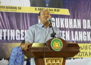 Langkat, POL | Pelaksana Tugas (Plt) Bupati Langkat H Syah Afandin SH mengukuhkan dan melepas Kontingen Pekan Olahraga Provinsi Sumatera ...