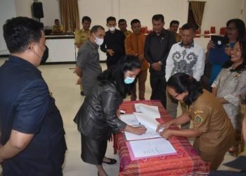selengkapnya>Samosir, POL | Ketua DPRD Samosir Sorta E. Siahaan bersama Bupati Samosir Vandiko Gultom menandatangani nota kesepakatan tentang kebijakan umum ...
