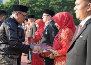 Upacara Penurunan Bendera Diwarnai Pemberian Tanda Kehormatan Satyalancana Satya pada PNS Pemko Medan