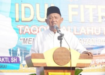Bupati Langkat Syah Afandin Sholat Idul Fitri Bersama Ratusan Umat di Alun-Alun Stabat