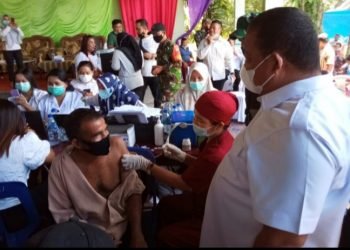 Langkat POL | Bupati Langkat Terbit Rencana PA berikan apresiasi antusias masyarakat Kecamatan Sei Bingai mengikuti vaksinasi massal dosis pertama, ...