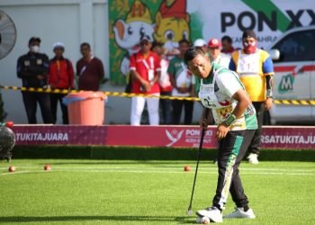Medan, POL | Atlet Sumatera Utara (Sumut), Indisianto Purba lolos ke semifinal gateball kategori tunggal pria pada Pekan Olahraga Nasional ...