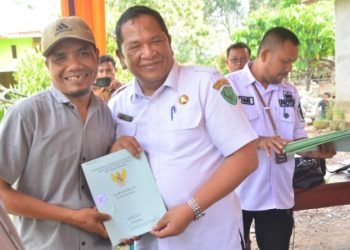selengkapnya>Padangsidempuan, POL | Wali Kota Padangsidempuan Irsan Efendi Nasution menyerahan Sertifikat PTSL secara simbolis oleh BPN di Kelurahan Batunadua Jae ...