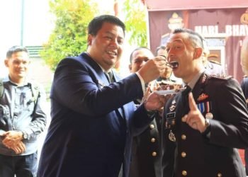 selengkapnya>Samosir, POL | Bupati Samosir Vandiko T. Gultom bersama Wakil Bupati, Martua Sitanggang menghadiri upacara dan syukuran HUT ke-77 Bhayangkara ...