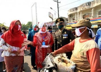 Upaya Memutuskan Rantai Penyebaran Covid 19, Ketua TP PKK Langkat Sosialisai dan Bagikan 30 Ribu Masker