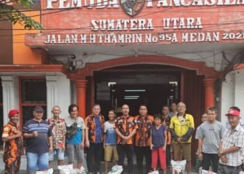 Medan, POL | Majelis Pimpinan Wilayah (MPW) Pemuda Pancasila (PP) Sumatera Utara membagikan ratusan paket sembako kepada masyarakat pra sejahtera ...