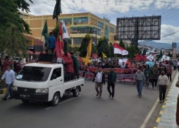 selengkapnya>Medan, POL | Ratusan mahasiswa dari beberapa universitas di Kota Medan, geruduk gedung DPRD Sumatera Utara, Jalan Imam Bonjol Medan, ...