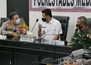 selengkapnya>Medan, POL | Wali Kota Medan, Muhammad Bobby Afif Nasution,SE.,MM bersama unsur Forkopimda Kota Medan mengikuti rapat koordinasi penegakan disiplin ...