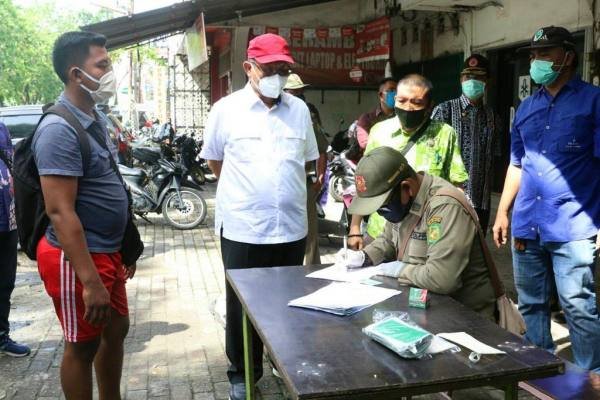 Medan, POL | Penggunaan masker  wajib bagi penduduk Kota Medan jika sedang berada diluar rumah  sesuai Peraturan Wali Kota Medan Nomor 11 Tahun 2020 Tentang Karantina Kesehatan Dalam Rangka Percepatan Penanganan Virus Corona Disease 19 (Covid-19). Guna memastikan warganya mengenakan masker, Pelaksana Tugas (Plt) Wali Kota Medan Ir H Akhyar Nasution MSi terus memantau razia masker yang dilaksanakan Tim Gabungan Pemko Medan dibantu Satuan Polisi Pamong Praja (Satpol PP) Provinsi Sumatera Utara di bilangan Jalan Setia Budi, Kecamatan Medan Sunggal. Jum’at (8/5/2020).