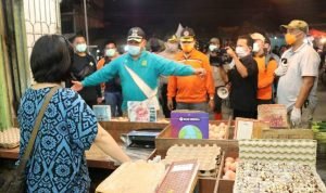 Selain warung dan swalayan, Akhyar juga mendatangi pasar. Malam itu para pedagang mulai beraktifitas untuk melakukan transaksi jual beli. Selain mengingatkan agar para pedagang untuk menjaga kesehatan dengan mengenakan masker, juga diingatkan untuk selalu membersihkan tangan dengan sabun untuk mencegah penyebaran Covid-19. Di samping itu juga selalu menjaga jarak dengan pembeli maupun pedagang lainnya.