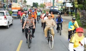 “Kegiatan ini diharapkan dapat lebih meningkatkan semangat kita semua agar lebih sehat dan jika sudah sehat, maka dalam mengajar anak didik akan lebih semangat. Olahraga ini sehat dan mestinya kita biasakan sebab ini bentuk demokrasi yang sejati adalah bersepeda. Dengan bersepeda, semuanya mengayuh bersama untuk sampai pada tujuan atau garis finish, tidak ada perbedaan kedudukan atau jabatan,” ujar Bupati.