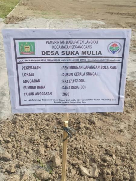 Menurut Anggota BPD Suka Mulia yang juga enggan disebut namanya pekerjaan penimbunan lapangan sepak bola semestinya di kerjakan di tahun 2020. maka kami BPD melaporkan hal ini kepada Camat. Nah kemudian camat memerintahkan Kades, sehingga di tanggal 28 Februari 2021 di mulailah pekerjaan tersebut, ungkapnya.