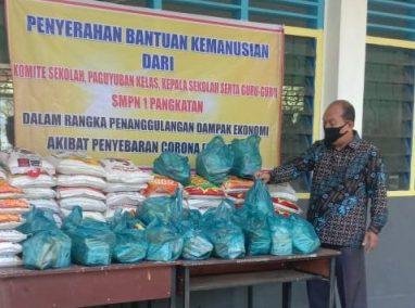 Komite Sekolah dan Guru SMPN 1 Pangkatan Berbagi Sembako Kepada Siswa Yatim Piatu