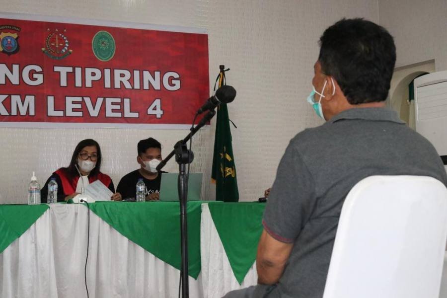 Medan, POL | Para pelanggar protokol kesehatan (prokes) dan ketentuan PPKM Level IV di Medan harus menjalani sidang tipiring di Posko Penanganan Covid-19 Medan juga secara dalam jaringan (daring), Senin (2/8/2021). Umumnya warga yang menjalani persidangan ini adalah pelaku usaha yang tidak mematuhi prokes serta melanggar ketentuan batas waktu operasional.