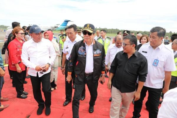Kedatangan Menkumham dan Menteri PDTT disambut oleh Gubernur Sumut Edy Rahmayadi dan Wakil Gubernur (Wagub) Sumut Musa Rajekshah di Bandara Binaka, Gunungsitoli.
