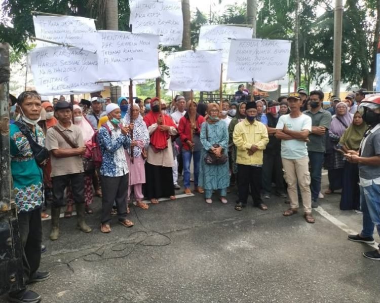 Deli Serdang, POL | Ratusan pekerja aktif dan pensiunan PT. Mara Jaya Perkebunan Batu Rata Kecamatan Bangun Purba beramai ramai menggelar aksi unjuk rasa didepan Kantor Bupati Deli Serdang, Senin (27/6/2022).