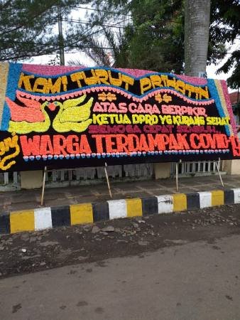 Tidak diperoleh keterangan lebih lengkap dan terinci terkait siapa pengirim papan bunga yang menyatakan prihatin. Hanya mengaku sebagai warga yang terdampak Covid 19 tersebut. Soalnya saat ditelusuri tidak ada seorang pun anggota DPRD yang berada di kantor dewan tersebut.